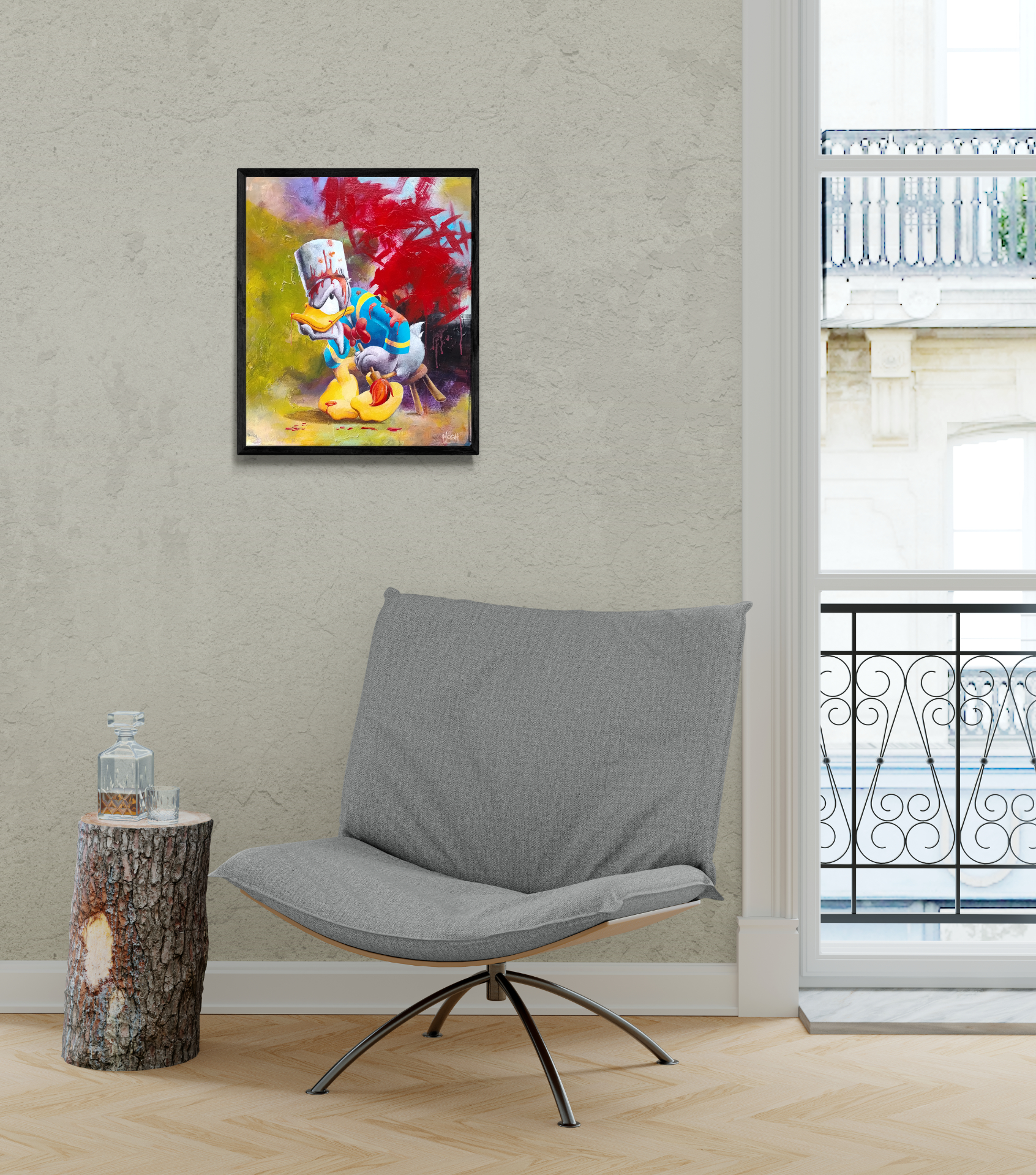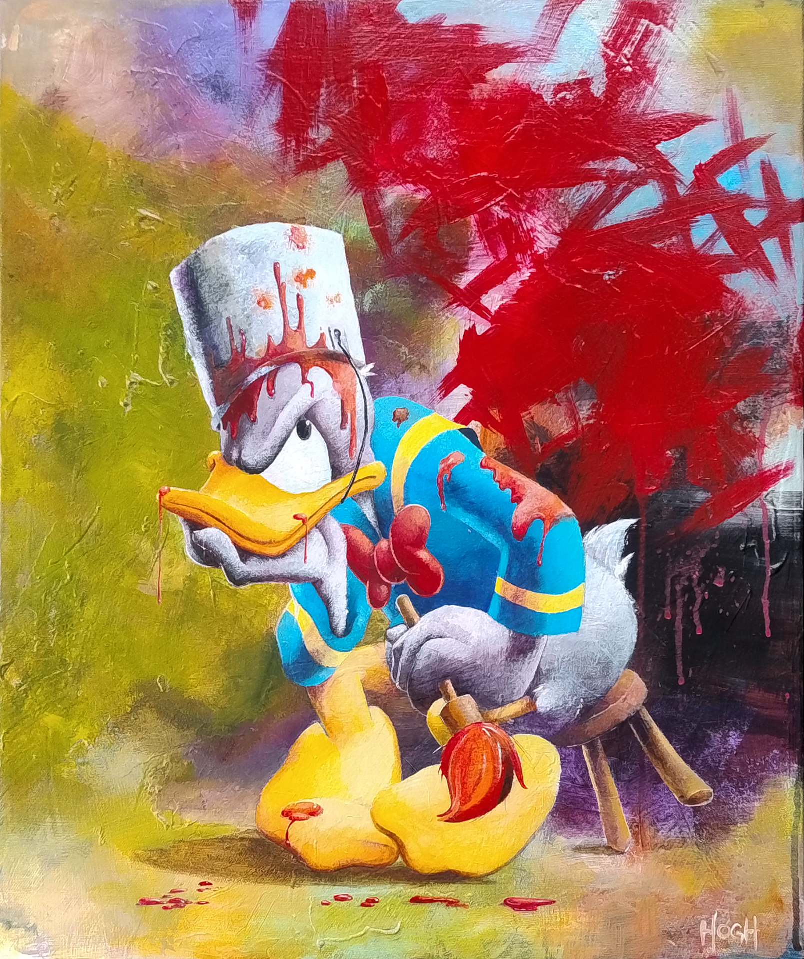 Helt unikt Anders And-maleri på 50x60 cm. Dette mesterværk er har monteret sort ramme. Maleriet kan sendes med GLS.