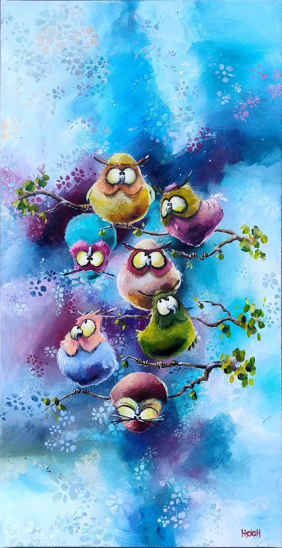 Fantastisk maleri hold i flotte blå nuancer. Maleriet 50x100 cm. og der følger en sort ramme med maleriet.